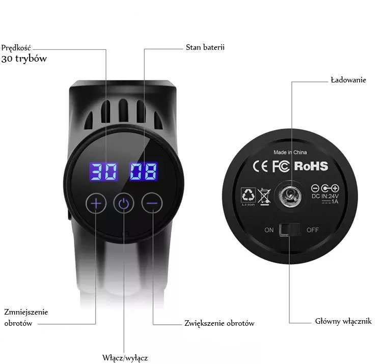 Masażer bardzo porządnie wykonany i dosyć wygodny ze względu na gumowaną w całości obudowę co zapewnia pewny chwyt. Wydaje mi się że 30 poziomów nie jest potrzebne bo na 30 poziomie to masażer prawie urywa rękę i hałas jest dosyć spory. Ja osobiście używam od 1 do 10 i w moim wypadku to wystarcza. Jedyne czego mi brakuje to masażer mógłby posiadać przegub łamiący całą konstrukcję wtedy wygodniej byłoby samodzielnie wykonywać masaż na przykład obręczy barkowej pleców. Polecam
